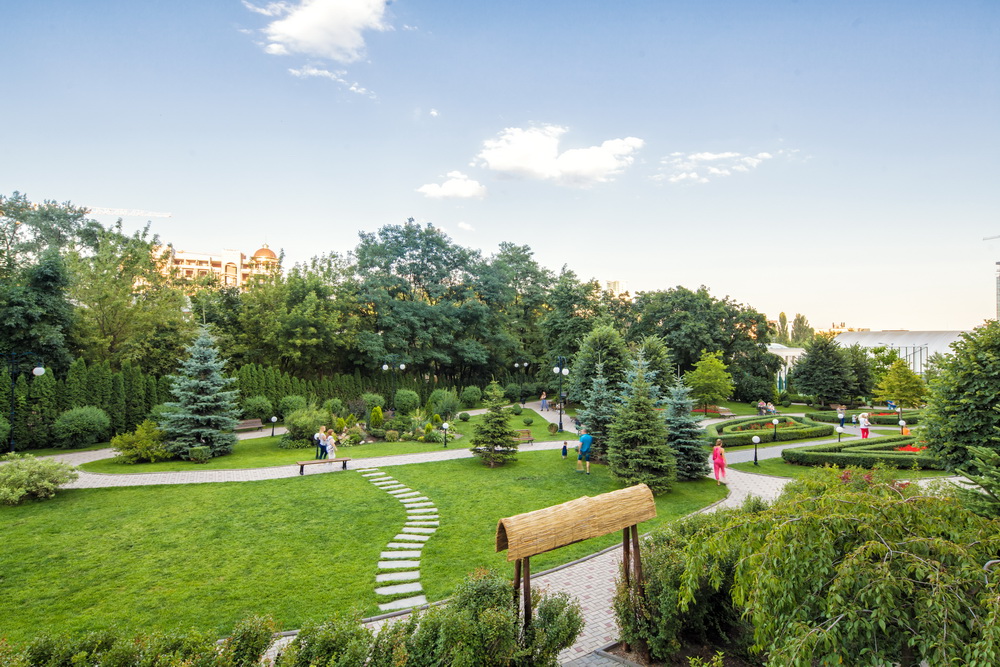 - Green landscape zone – a third part of the complex is reserved for parks and recreation areas