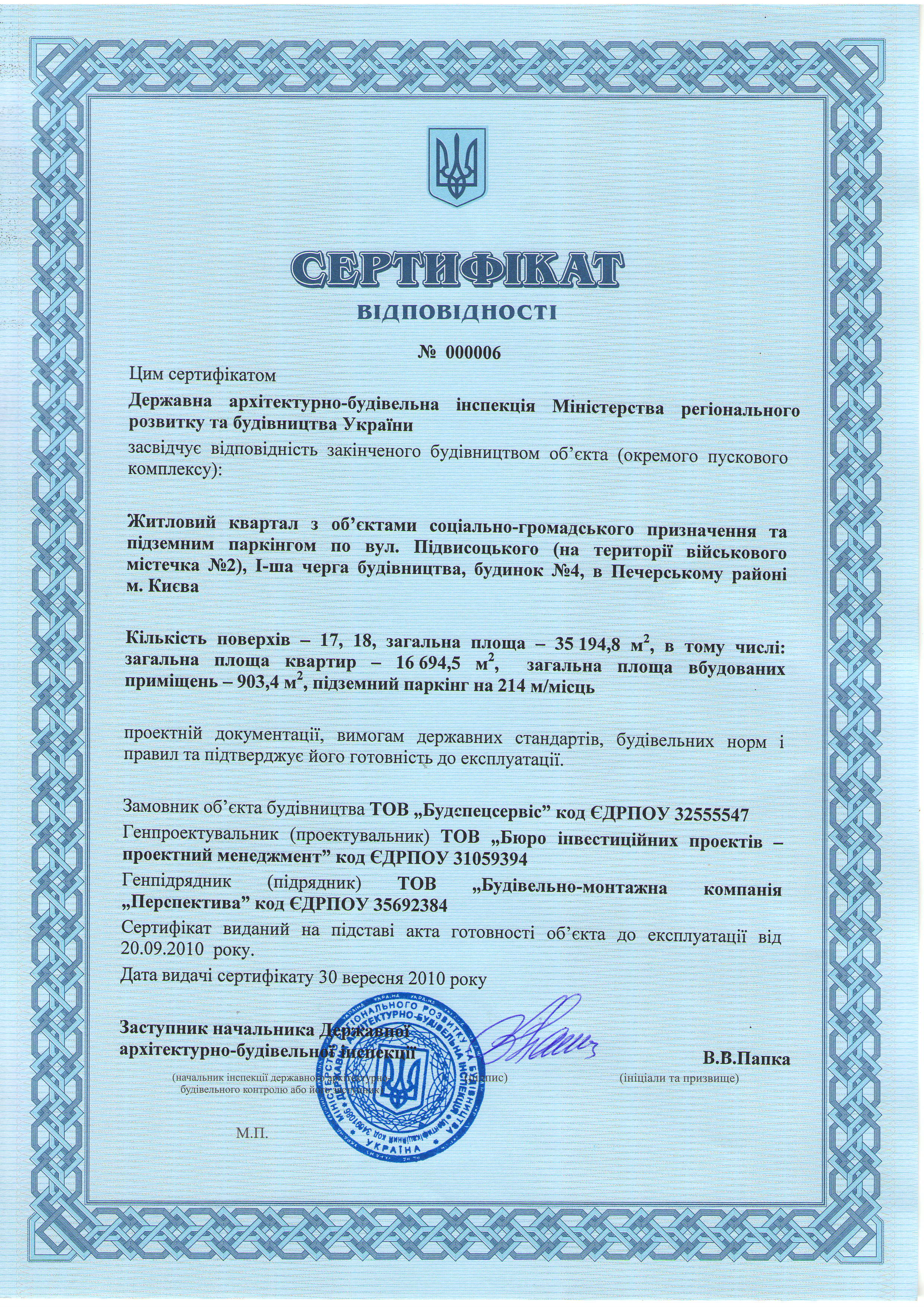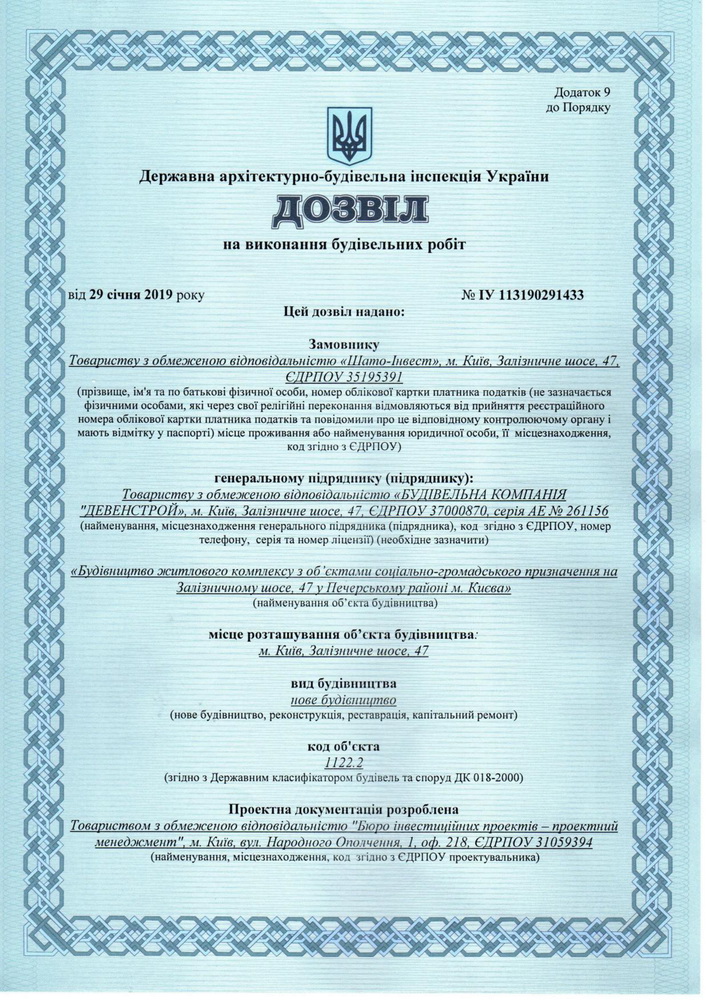 - Дозвіл на будівництво “Шато-Інвест”